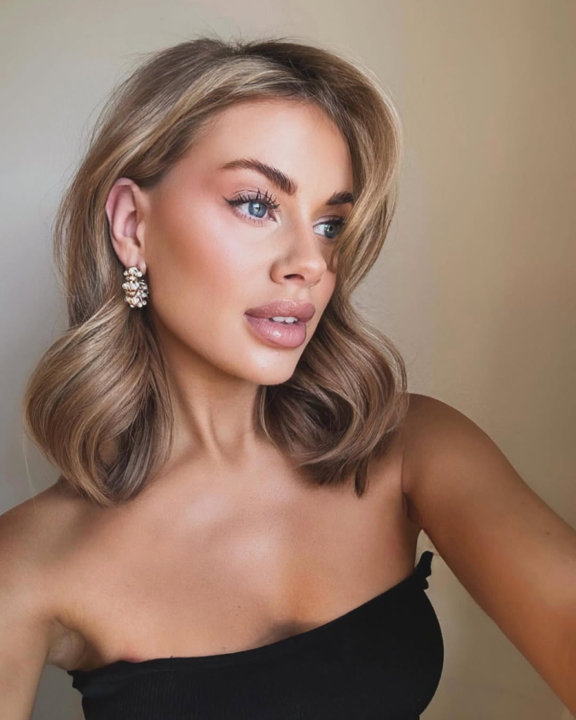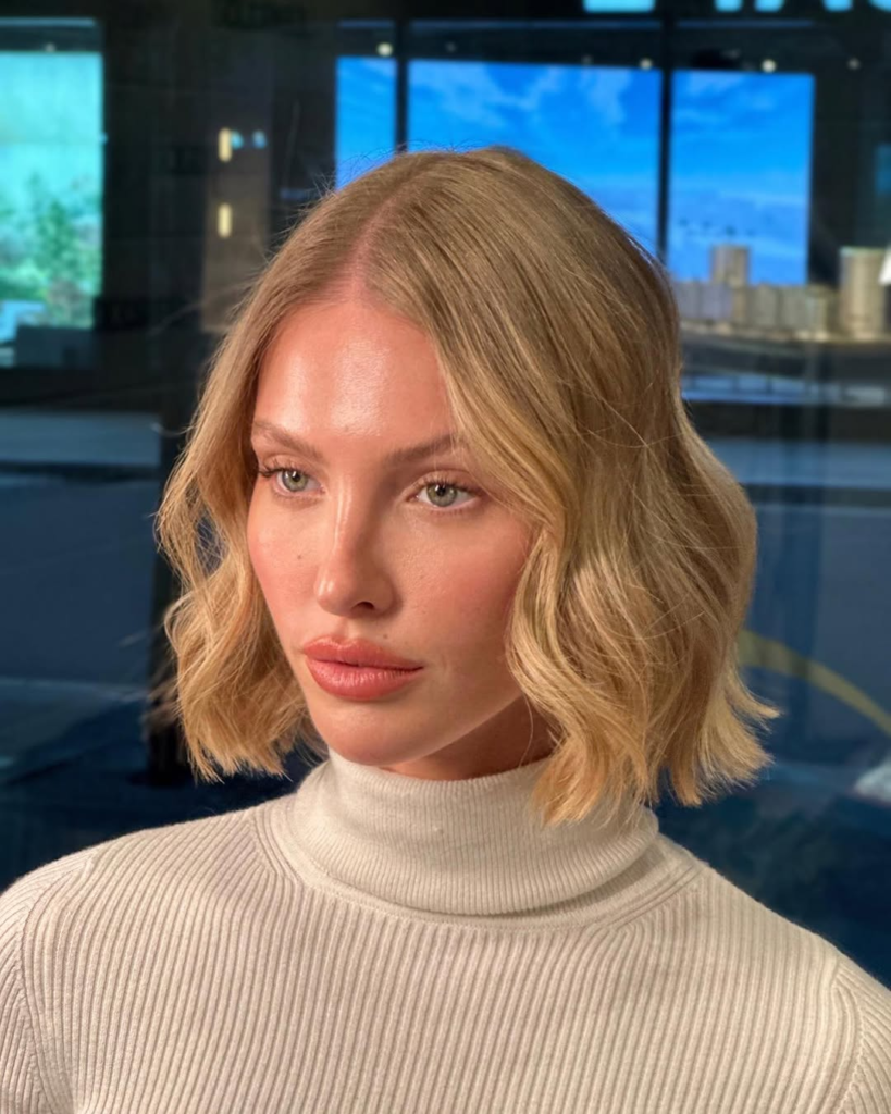 This style works best for oval and heart-shaped faces, as the blunt cut defines the jawline while the waves add softness. I love how this bob is both timeless and contemporary, making it an easy go-to for an elevated everyday look.