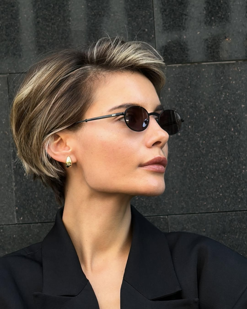 Style tip: Use a texturizing spray to add definition and lift, giving the pixie cut a dynamic, voluminous finish.