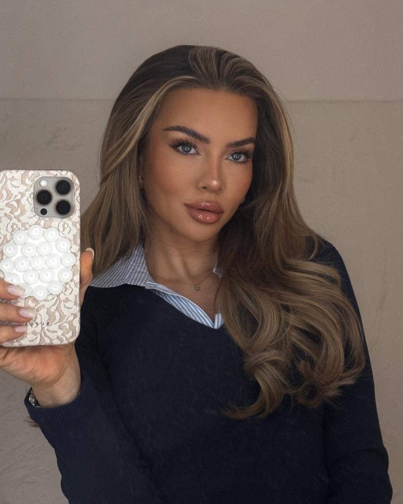 This hairstyle is especially flattering for oval, heart, and square face shapes, as the soft layers help balance proportions and create a beautifully framed look. It pairs effortlessly with classic, neutral outfits—like this cream sweater—to enhance its quiet luxury appeal.