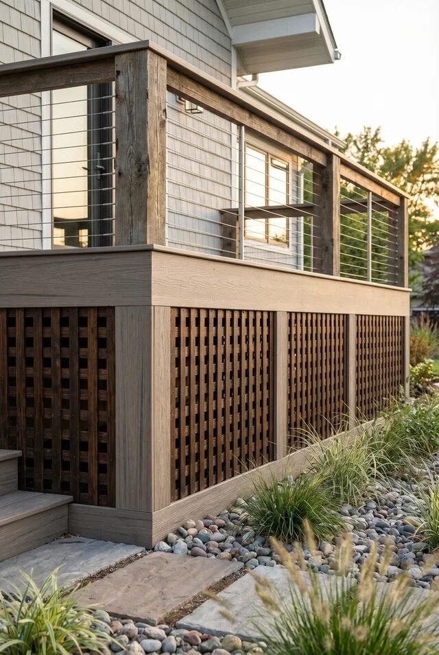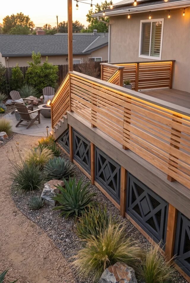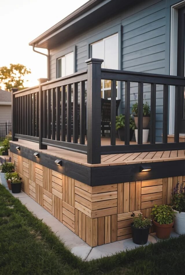 At some point, the skirting stops being background and starts stealing the show—and we’re kind of here for it. From glowing wood panels to bold, almost sculptural designs, these ideas prove that the base of your deck can carry just as much style as what’s happening on top.