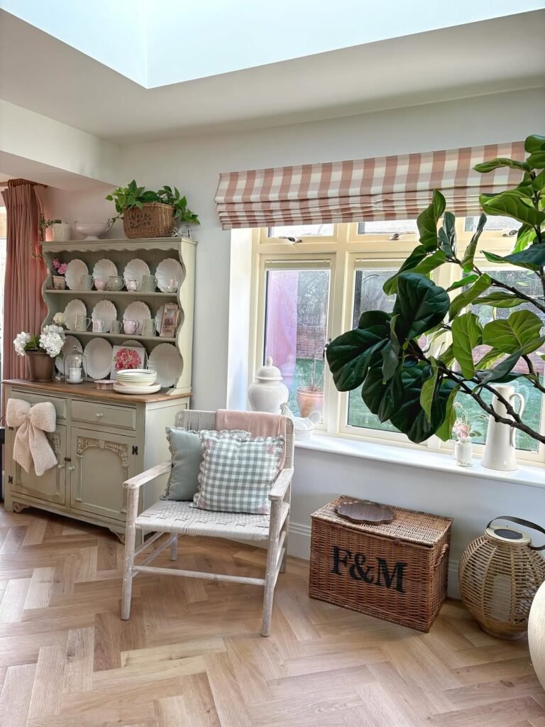 To recreate this idea, start with a comfortable chair near a window if possible. Add layered textiles like a cushion or throw, then style the surrounding area with vintage pieces or soft pastels. Suddenly your kitchen isn’t just where meals happen — it becomes the place where slow mornings and life chats quietly unfold.