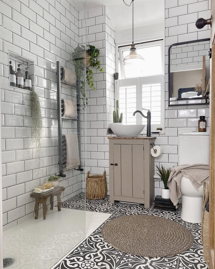 Bright White Tiles Meet Soft Rustic Warmth
